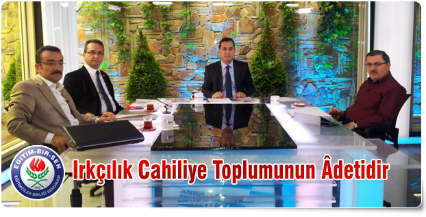 Eğitim-Bir-Sen ve Memur-Sen Genel Başkanı Ahmet Gündoğdu, Kanaltürk Televizyonu’nda yayınlanan ve Faruk Mercan’ın sunduğu ‘Ankara’nın Nabzı’ programına konuk oldu. Akil İnsanlar Doğu Anadolu Heyeti Üyesi Abdurrahman Kurt, CHP Genel Başkan Yardımcısı ve Aydın Milletvekili Bülent Tezcan, MHP Osmaniye Milletvekili Hasan Hüseyin Türkoğlu’nun da katıldığı programda konuşan Genel Başkan Ahmet Gündoğdu, vatanın bölünmez bütünlüğünü, kucaklaşmayı sağlamak gerektiğini belirterek, “Irkçılık, cahiliye toplumunun âdetidir” dedi.