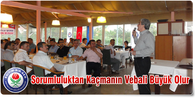 Eğitim-Bir-Sen Genel Başkan Yardımcısı Teyfik Yağcı, “Bizler, Türkiye’nin en büyük sivil toplum örgütü olarak, milletin önündeki en büyük problemle ilgili bir nebze de olsa sorumluluk almayacaksak, daha ne güne varız. Bu sorumluluktan kaçanlar, varsın 5-10 üye kaygısına düşsünler. Bu sorumluluktan kaçmanın vebali büyük olacaktır” dedi.