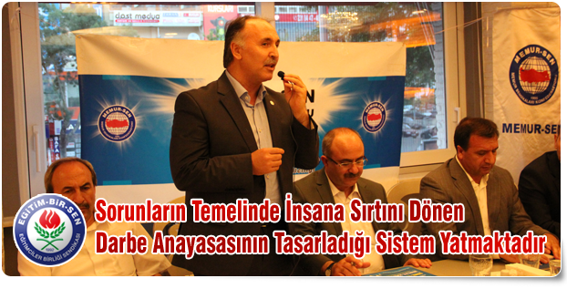 Eğitim-Bir-Sen Genel Başkan Vekili Ahmet Özer, yaşanan sorunların temelinde insana, insan onuruna, insan haklarına sırtını dönen darbe ürünü anayasa ve onun tasarladığı siyasal sistemin yattığını belirterek, “Bu nedenle, sorunun çözümü ve nedenlerin ortadan kaldırılması noktasında, mevcut anayasadan kurtulmak ve yeni anayasa yapmak son derece elzemdir” dedi.