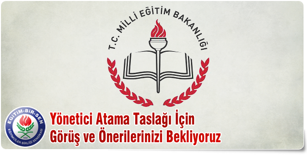Milli Eğitim Bakanlığı Eğitim Kurumları Yönetici Atama ve Yer Değiştirme Yönetmeliği taslağı yayınlanmıştır. Sendikamız tarafından Bakanlığa iletilmek üzere oluşturulacak görüş ve öneri tespitinde esas alınmak üzere taslak ile ilgili görüş ve önerilerinizi 21.06.2013 saat 17:30’a kadar mevzuat@egitimbirsen.org.tr adresinden gönderebilirsiniz.