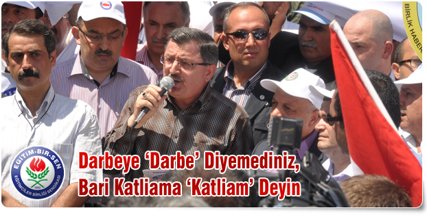 "Hala Amerika 'bu darbe mi değil mi yasalarımıza göre buna 'darbe diyemeyizi' konuşuyor. Fütursuz bir şekilde bari katliama 'katliam' deyin. Birleşmiş Milletler’den ses yok. İslam ülkeleri de büyük çoğunluğu darbe dememişti. Dünyanın gözü önünde Mısır Savunma Bakanı Abdülfettah Sisi katliam yapıyor. Artık dünyanın, BM'nin, Avrupa'nın, Amerika'nın, insan hakları kurum ve kuruluşlarının bu dramı, vahşeti ve katliamı görmesi lazım, buna 'dur' demesi lazım. Burada İhvanı Müslime de elbette büyük sorumluluk düşüyor ."