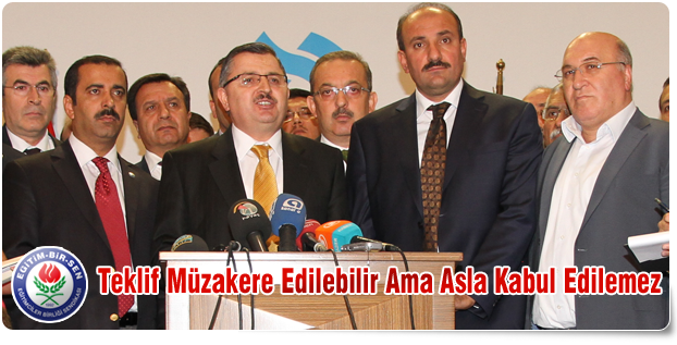 1 Ağustos 2013 tarihi itibariyle başlayan toplu sözleşme görüşmeleri devam ediyor. Toplu sözleşme müzakerelerini Eğitim-Bir-Sen ve Memur-Sen Genel Başkanı Ahmet Gündoğdu, Genel Başkan Vekili Ahmet Özer, Mevzuat ve Toplu Sözleşmeden Sorumlu Genel Başkan Yardımcısı Ramazan Çakırcı ve Hukuk Müşaviri Av. Harun Kale yürütüyor.