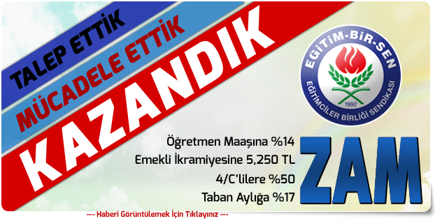 2014 yılı için yüzde 3+3 ya da taban aylığa brüt 100 TL zam, 2015 yılı için yüzde 3+3 oransal artış önerilmiştir. Öğretmenlerin özel hizmet tazminatlarına (eğitim-öğretim tazminatına) 2014 için 40+40 TL ek zam, 4/C’li personele ise 2014 için eş ve çocuk yardımı ile birlikte brüt 150 lira seyyanen zam teklifi gelmiştir.