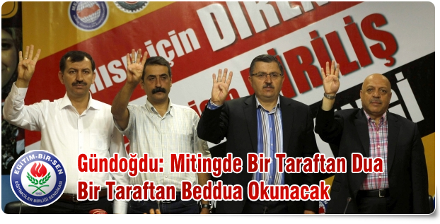 Memur-Sen ve Eğitim-Bir-Sen Genel Başkanı Ahmet Gündoğdu, 'Mısır İçin Direniş, İnsanlık İçin Diriliş' mitinginde bir taraftan dua; bir taraftan da beddua okunacağını söyledi.