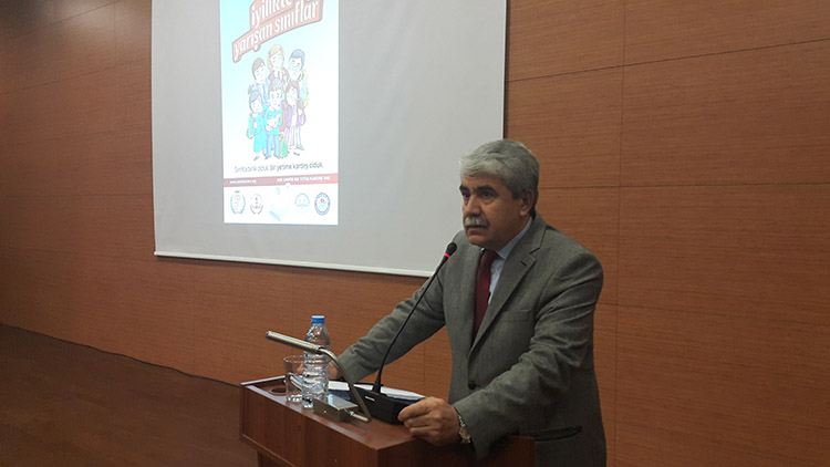 Daha sonra söz alan Eğitim-Bir-Sen Genel Başkan Yardımcısı Teyfik Yağcı, paydaşı oldukları ‘Her Sınıfın Bir Yetim Kardeşi Var’ projesine çok önem verdiklerini ifade ederek, “Savaşlar sadece bir milleti yok etmiyor, geriye boynu bükük yetim çocuklar da bırakıyor. Irak, Gazze, Filistin, Suriye ve Doğu Türkistan’ın yanı sıra Hindistan, Afganistan, Pakistan, Çeçenistan, Arakan, Mali, Somali, Endonezya, Nijerya ve Güney Afrika gibi ülkelerde çeşitli nedenlerden dolayı milyonlarca çocuk annesiz babasız kalmış ve bunlar bizlerin yardımına muhtaçtır” şeklinde konuştu.