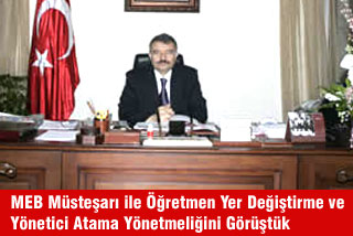 Genel Sekreterimiz Halil Etyemez ile Genel Mevzuat ve Toplu Görüsme Sekreterimiz Ramazan Çakici, sözlesmeli ve kadrolu ögretmenlerin Özür Durumuna Bagli Yer Degistirme ve Yönetici Atama Yönetmeligi konularinda Milli Egitim Bakanligi Müstesari Muammer Yasar Özgül ile görüstüler. Görüsmede su konular ele alindi:
