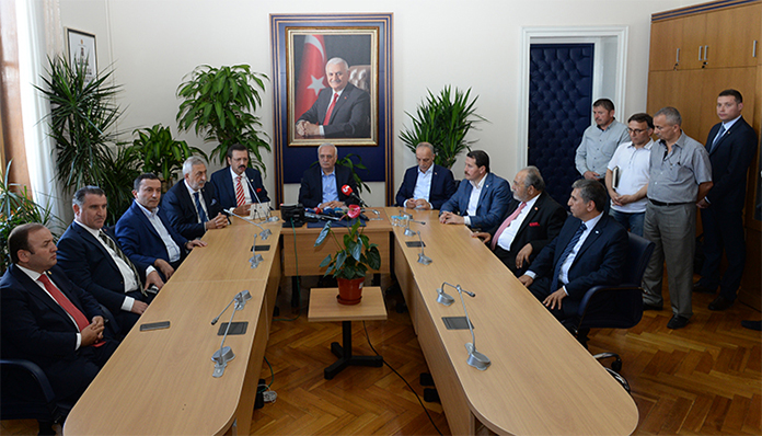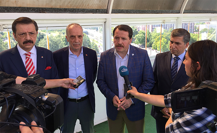 Eğitim-Bir-Sen ve Memur-Sen Genel Başkanı Ali Yalçın, Türkiye Esnaf ve Sanatkarları Konfederasyonu Genel Başkanı Bendevi Palandöken, Türkiye Odalar ve Borsalar Birliği Başkanı Rifat Hisarcıklıoğlu, Türk-İş Başkanı Ergül Atalay, Hak-İş Genel Başkan Yardımcısı Mehmet Şahin ve Türkiye İşveren Sendikaları Konfederasyonu Yönetim Kurulu Üyesi Ahmet Hilmi Eren, Türkiye Esnaf ve Sanatkarları Konfederasyonu’nda bir araya gelerek ortak bir basın açıklaması yaptı. Millete ve iradesine yönelik yapılan darbe girişimini kınayan STK Temsilcileri, meydanları boş bırakmayacaklarını söyledi.