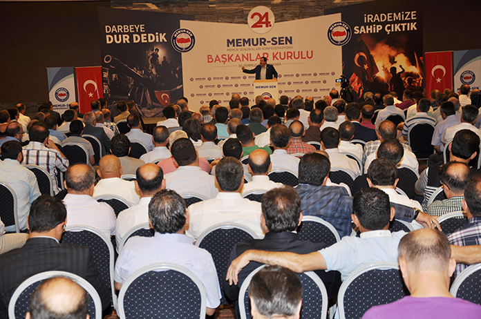 24. Memur-Sen Başkanlar Kurulu Ankara’da gerçekleştirildi. Başbakan Yardımcısı Prof. Dr. Numan Kurtulmuş’un da katıldığı ‘Başkanlar Kurulu’nda konuşan Ali Yalçın, “15 Temmuz 2016 Cuma akşamı; milletin iradesine darbe vurmak, devletin yönetimi üzerinde cunta kurmak, Türkiye’yi efendilerinin işgal coğrafyası yapmak isteyen FETÖ’nün kanlı darbe girişimiyle karşı karşıya kaldık. İhanet şebekesinin okyanus ötesindeki elebaşı ve haşhaşilerinin vahşetini hep birlikte yaşadık. Millete kan kusturmak, devlete diz çöktürmek istediler. 1071’den bugüne bu toprakların en sinsi, en kirli, en acımasız terör ve ihanet şebekesi, kırk yıllık sızıntıyı, milleti yutacak bir akıntıya dönüştürmeye kalktı” dedi.