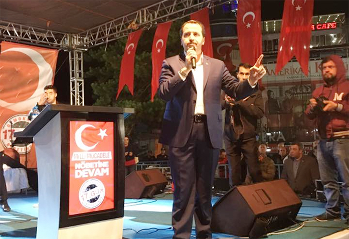 Malkoç, 15 Temmuz’dan beri Türkiye’nin ayakta olduğunu, bu millete karşı Türk Silahlı Kuvvetleri’nin içerisindeki bir grup hain, katil ve eşkıya tarafından pusu kurulduğunu ve Allah’ın onlara müsaade etmeyerek tezgâhlarını başlarına geçirdiğini kaydetti.