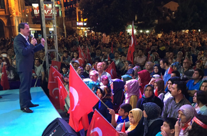 15 Temmuz darbe girişimini gerçekleştiren FETÖ’ye en büyük dersi milletin verdiğini belirten Yalçın, “Bu milletin vergisiyle maaş alıp, evine ekmek götüren ve yediği ekmeğe, hizmet ettiği vatana, annesinden emdiği süte ihanet eden, milletin üzerinde alçak uçuş yaparak millete alçakça saldıranlara bu millet en büyük dersi verdi. Millet onları tarihin çöp sepetine gönderdi. Göğsünü mermilere siper eden millet, tarihe altın harflerle not düştü. Onun için bu millete teşekkür ediyoruz” şeklinde konuştu.