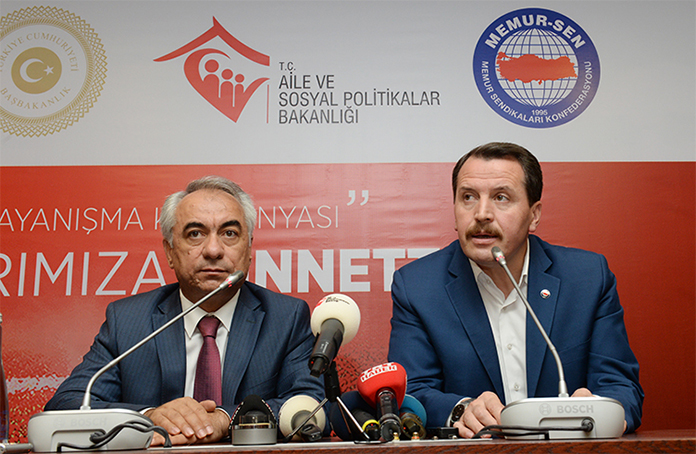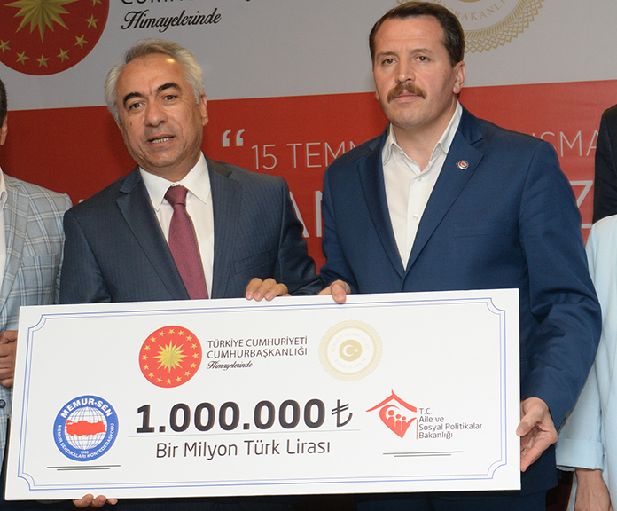 Fetullahçı Terör Örgütü'nün (FETÖ) darbe girişimi sırasında şehit düşen vatandaşların aileleri ve gaziler için başlatılan ve Aile ve Sosyal Politikalar Bakanlığınca yürütülen 15 Temmuz Dayanışma Kampanyasına Memur-Sen'den destek geldi. Eğitim-Bir-Sen ve Memur-Sen Genel Başkanı Ali Yalçın, Aile ve Sosyal Politikalar Bakan Yardımcısı Mehmet Ersoy'a 1 milyon liralık destek çekini teslim etti.