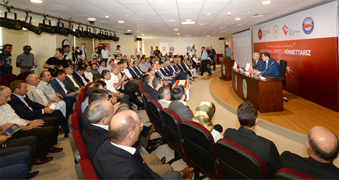 Genel Başkan Ali Yalçın, " Bugün burada, Şehit ve Gazilerimizle dayanışmamızı kayıt altına alıyoruz. Büyük Memur-Sen ailesi olarak hain, silahlı darbe teşebbüsünde şehit olan vatandaşlarımızın ailelerinin kederlerini hafifletmek ve yaralılarımızın acılarına ortak olmak için Türkiye Cumhuriyeti Cumhurbaşkanlığı himayelerinde Başbakanlık tarafından hazırlanan, Aile ve Sosyal Politikalar Bakanlığı'nın görevlendirildiği "Dayanışma Kampanyası”na 1 Milyon TL bağış ile vira bismillah diyoruz" dedi.