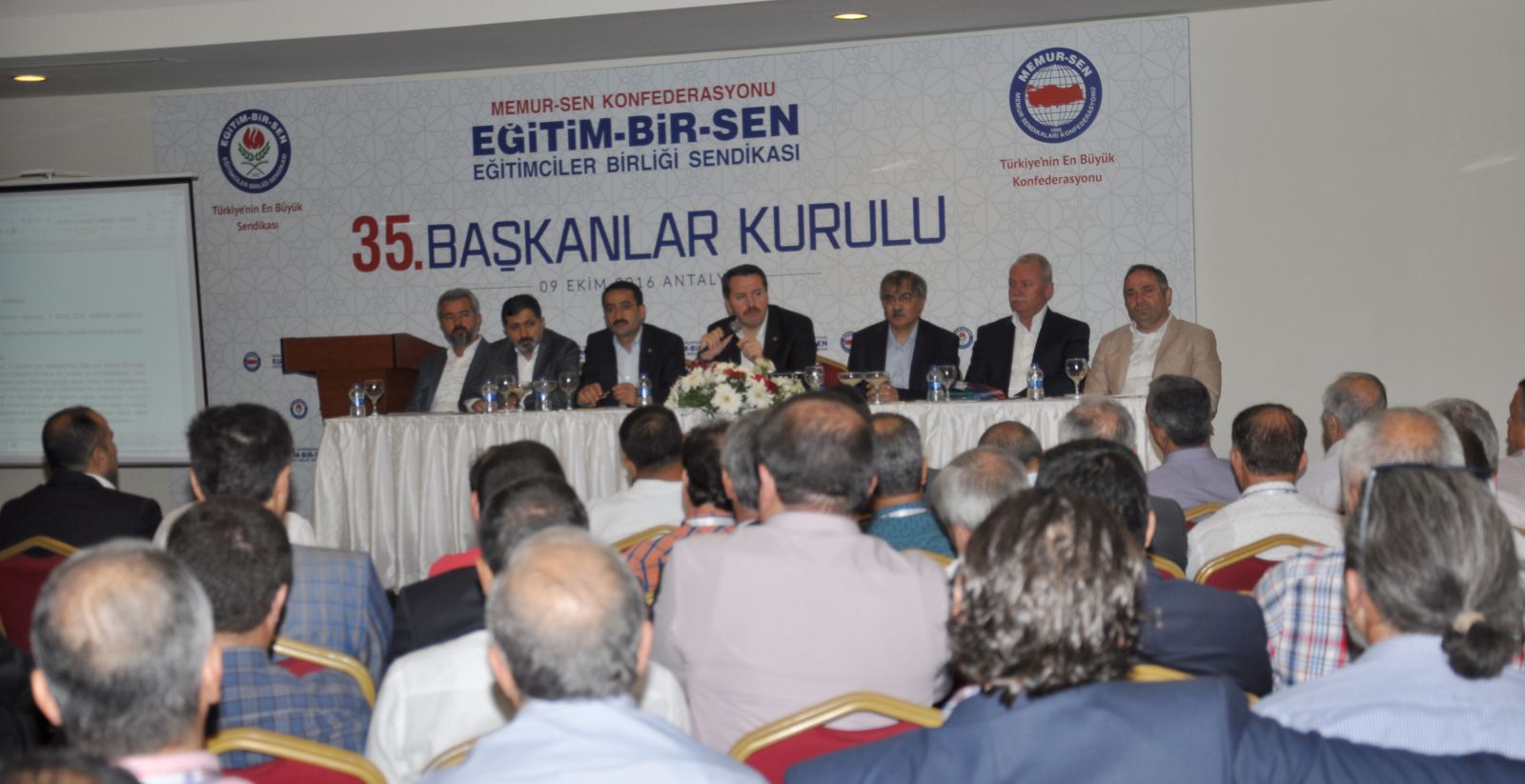 Eğitim-Bir-Sen 35. Başkanlar Kurulu toplantısı Antalya’da yapıldı. Eğitim-Bir-Sen ve Memur-Sen Genel Başkanı Ali Yalçın’ın açılış konuşmasının ardından, eğitimin gündemine ve bölgemizde yaşanan gelişmelere ilişkin değerlendirmelerin, sorunların çözümü için istişarelerin yapıldığı toplantıda önemli kararlar alındı:
