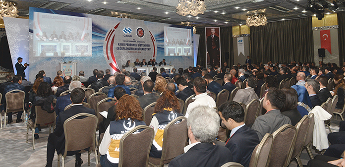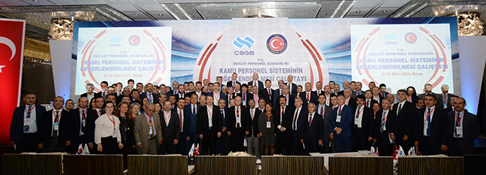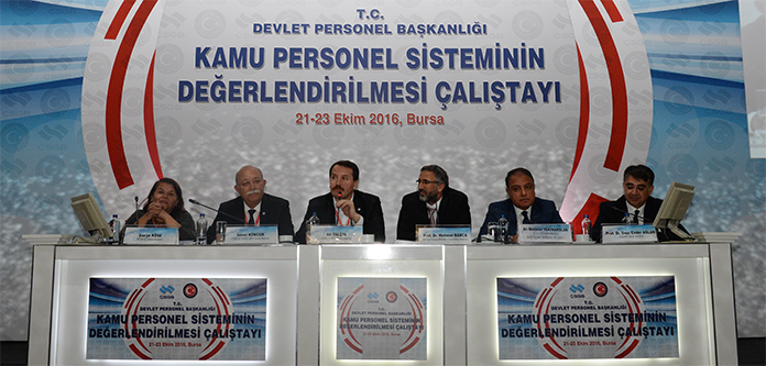 Devlet Personel Başkanlığı’nın Bursa’da düzenlediği “Kamu Personel Sisteminin Değerlendirilmesi” çalıştayı, Çalışma ve Sosyal Güvenlik Bakanı Mehmet Müezzinoğlu, Eğitim-Bir-Sen ve Memur-Sen Genel Başkanı Ali Yalçın, Devlet Personel Başkan Vekili Enes Polat, Memur-Sen’e bağlı sendikaların genel başkanları ve başkan yardımcılarının katılımıyla başladı.