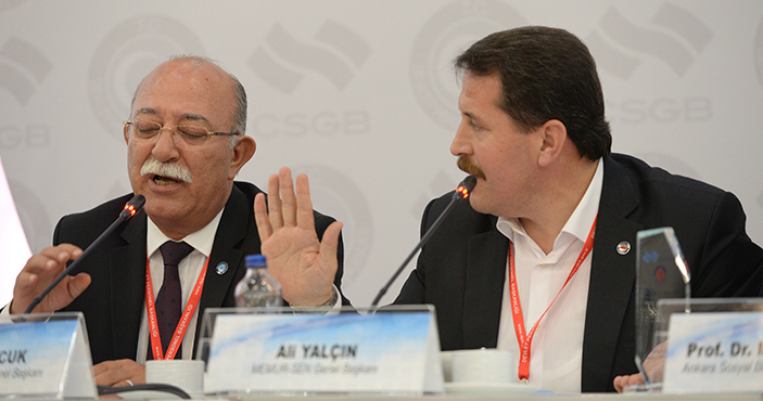 Çalıştayda konuşan Genel Başkan Ali Yalçın, “Memur-Sen olarak ‘iş güvencesi kırmızı çizgimizdir’ derken, emek örgütü olarak sahip olduğumuz nicel potansiyeli korumayı değil, üzerinde yaşadığımız toprakların ortak vatan, ortak yurt olmasını sağlayan niteliklerimizi harmanlayan ‘güven duygusunu’ esas alıyoruz. Kamu personel sistemimizin ana gövde unsurlarından iş güvencesini, devletin ve milletin bekası açısından da garantör değerlerden biri olarak kabul ediyoruz. Kamu yönetiminde güven, kamu personel sisteminde güvence ve kamu hizmetlerinde kalite hem soyut değer hem de somut sonuç olarak var olmalıdır” dedi.