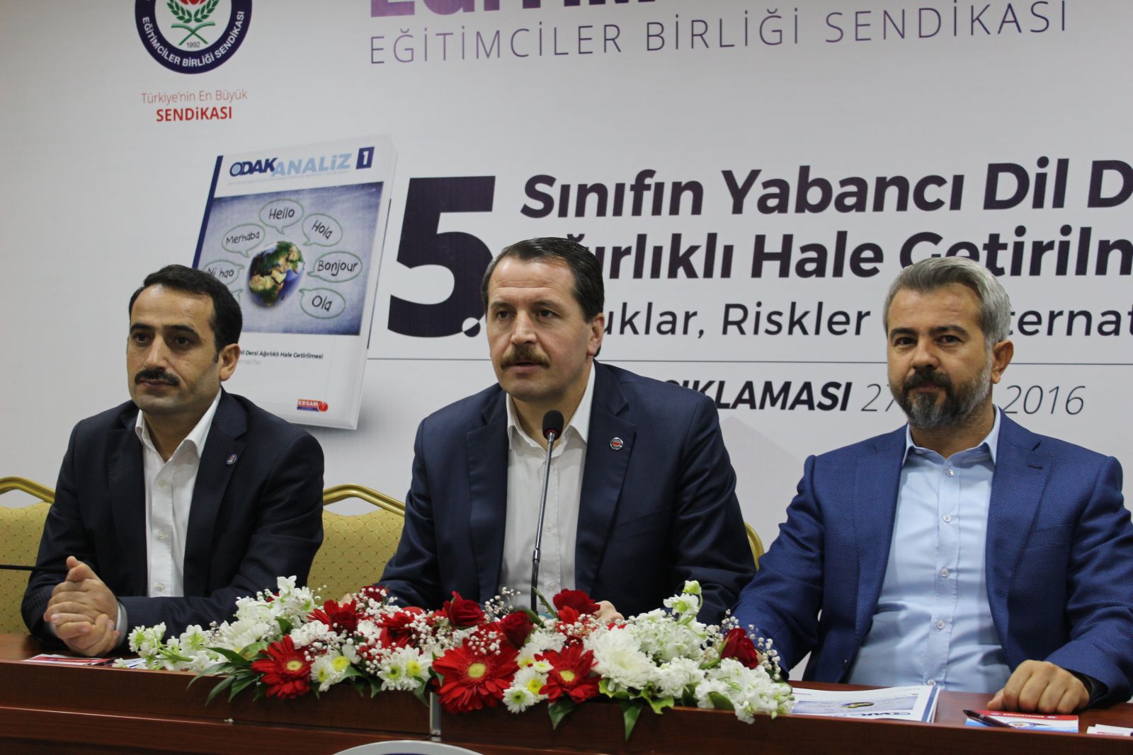 ‘Her şeyin başı eğitim’ ifadesini hem fikri ve hem de fiili düzlemde sıklıkla vurgulayanların çoğunlukta olduğu Türkiye’de, eğitimle ilgili gündemin boş kalmasının mümkün olmadığını belirten Yalçın, “Ders kitaplarından ders saatlerine, öğretmen atamalarından öğretmen ihtiyacına, müfredattan ders programlarına birçok başlık şu veya bu şekilde kamuoyu gündeminde tartışma zemini oluşturdu, oluşturuyor. Eğitim hizmeti sunan kamu görevlilerinin hakkını, hukukunu koruyan yetkili sendika kimliğinin yanında, eğitim alanına dönük bilimsel çalışmalarımız ve yayınlarımızla da akademik üretim merkezi olma özelliğimizin Eğitim-Bir-Sen olarak bize yüklediği sorumluluklar var. Başlığında ya da içeriğinde eğitimin, öğretimin, öğretmenlerin, öğrencilerin, eğitim çalışanlarının olduğu her konuya etkin özne sıfatıyla müdahil, paydaş olduk. Yakın dönemde, temel eğitim alanına dönük kapsamlı etkiler üretecek bir değişim, müfredat ve ders programı değişikliği hem ülkenin hem de bizim gündemimize düştü. Evet, Orta Vadeli Programın açıklandığı toplantıda Başbakan Sayın Binali Yıldırım’ın ‘İlk dörtten sonra, ikinci dörde başlamadan önce, beşinci sınıfta, bir yıl boyunca yabancı dil eğitimini vereceğiz’ ifadesiyle oluşan gündemi kastediyorum” şeklinde konuştu.