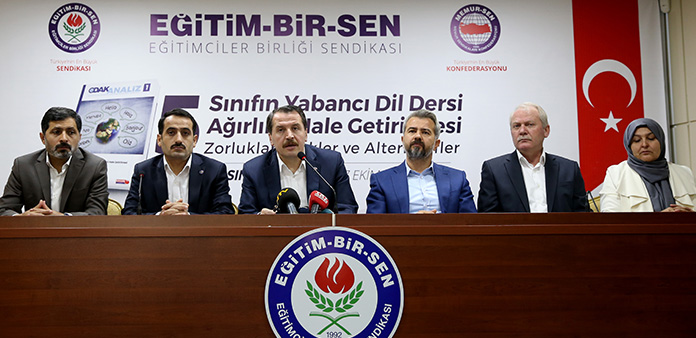 Eğitim-Bir-Sen ve Memur-Sen Genel Başkanı Ali Yalçın, ders saatlerini artırmanın yabancı dil öğretimi sorununu çözme yöntemi olarak görülmemesi gerektiğini ifade ederek, “Ders saatlerinde, haftalık ders programında yabancı dil derslerinin artırılmasının üreteceği diğer sorunlara gözümüzü kapatmamızı kimse beklemesin. Bunu sendikacı olarak da, eğitimci olarak da, veli olarak da yapamayız, yapmayız. Bu yüzden, Eğitim-Bir-Sen olarak, ‘Beşinci Sınıfın Yabancı Dil Dersi Ağırlıklı Hale Getirilmesi: Zorluklar, Riskler ve Alternatifler’ başlıklı bir analiz çalışması yaptık. Bu çalışmanın önemli içeriklerini, başlıklarını kamuoyuyla paylaşarak ‘yeniden ve birlikte düşünelim’ çağrısı yapıyoruz” dedi.