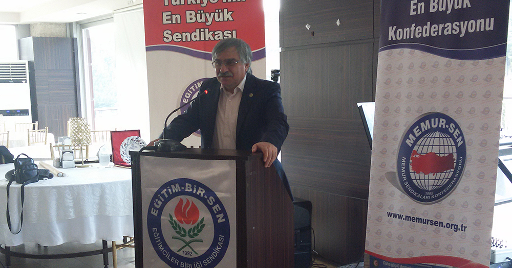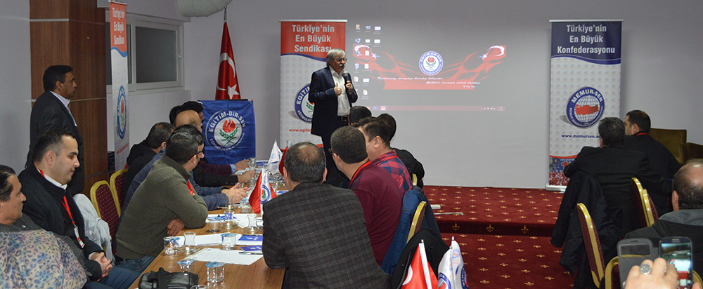 Eğitim-Bir-Sen Genel Başkan Vekili Latif Selvi, kamu görevlilerinin sorunlarının ve çözüm önerilerinin büyük oranda ortak olduğunu ifade ederek, “Birlikte hareket eder, omuz omuza verirsek sorunlarımızın üstesinden gelebileceğimizi düşünüyorum. Çıkarları uğruna ülkeleri harap eden, kirli ve karanlık odaklara karşı saflarımızı sıklaştırmaya, bilgi ve tecrübelerimizi birbirimize aktarmaya, bir araya gelip ortak projeler üretmeye ihtiyacımız var” dedi.
