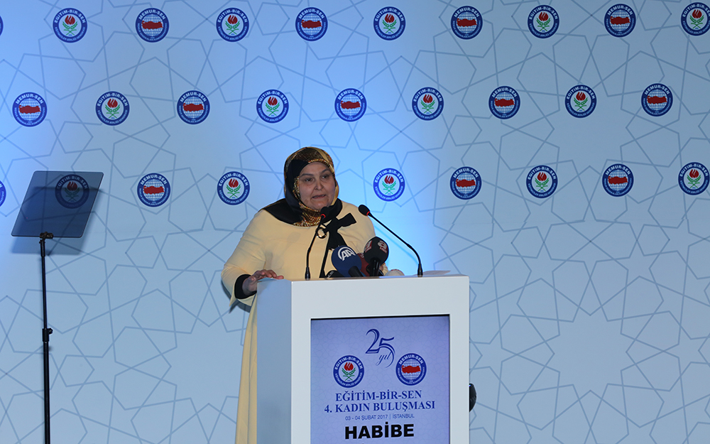 Eğitim-Bir-Sen 4. Kadın Buluşması, Emine Erdoğan, Aile ve Sosyal Politikalar Bakanı Fatma Betül Sayan Kaya, Eğitim-Bir-Sen ve Memur-Sen Genel Başkanı Ali Yalçın, Eğitim-Bir-Sen ve Memur-Sen Kadınlar Komisyonu Başkanı Habibe Öçal, milletvekilleri ve Şube Kadın Komisyonları üyelerinin katılımıyla İstanbul’da yapıldı.