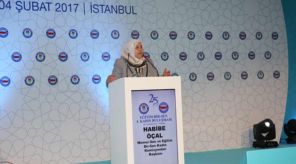 Eğitim-Bir-Sen ve Memur-Sen Kadınlar komisyonu Başkanı Habibe Öçal ise, komisyon olarak yaptıkları ve yapmayı planladıkları çalışmalar hakkında katılımcılara bilgi vererek, mevcut örgütlü kadın sayısının artırılması gerektiğini söyledi.
