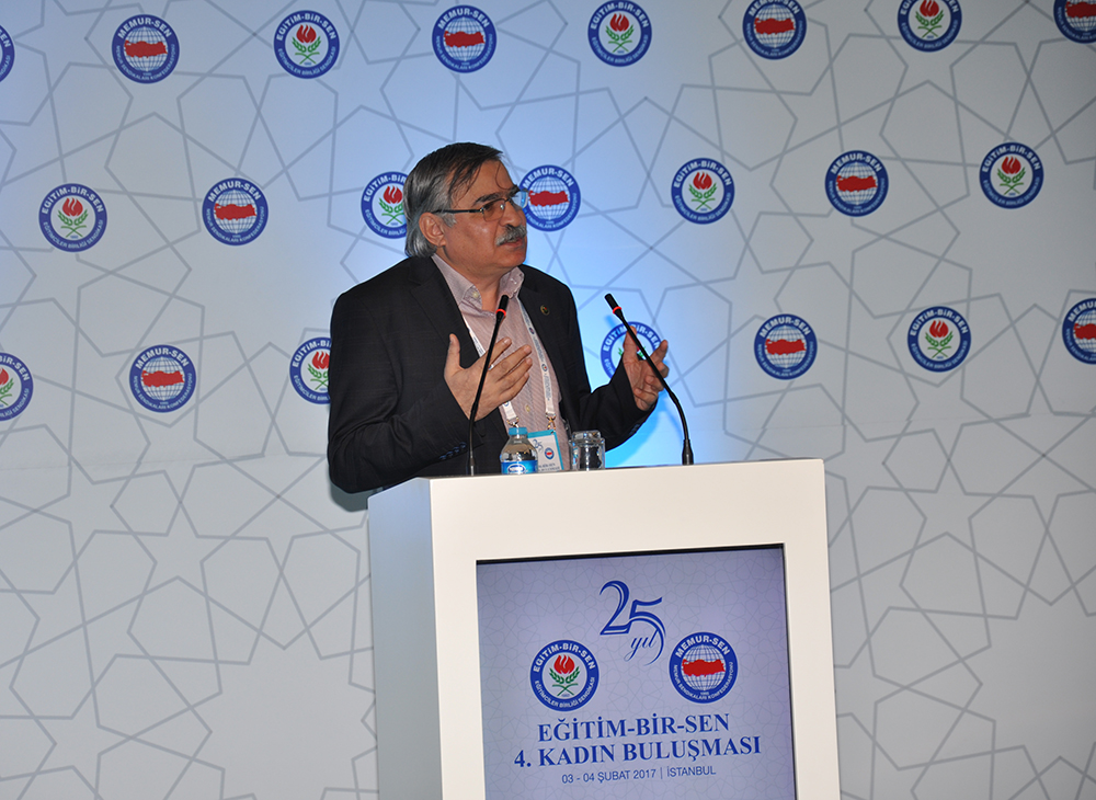 Eğitim-Bir-Sen 4. Kadın Buluşması programında konuşan Latif Selvi, örgütlenmenin önemine ve kadınların örgütlü mücadeleye katkısına değinerek, “Kadınların mücadelesi bir statü meselesi olmamalıdır. Amaç, emeğinin karşılığını alabilmek, özlük haklarında kadın çalışmalarına uygun bir düzenlemenin yapılmasını temin etmek, dayanışmayı, iş birliğini sağlamak ve kadın örgütlenmesini güçlü bir hale getirmek olmalıdır. Kadın nüfusu dikkate alındığında temsili istenen seviyede değildir. Bunun için mücadele edilmeli, kadınların taleplerinin güçlü bir şekilde dile getirilmesi için daha çok çaba harcanmalıdır” şeklinde konuştu.