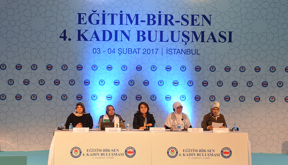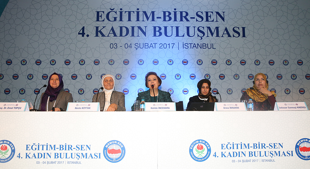 Eğitim-Bir-Sen 4. Kadın Buluşması programı kapsamında bir panel yapıldı. Oturum başkanlığın Gazi Üniversitesi İdari ve İktisadi Bilimler Fakültesi Dekanı Prof. Dr. Gonca Bayraktar Durgun’un yaptığı “Sivil Toplum Örgütlerinin Demokratikleşmedeki Yeri ve Önemi” başlıklı birinci oturumda, Gazeteci-Yazar Nazife Şişman “Tarihsel Süreçte Kadın”, UKDA Konfederasyonu Başkanı Fadila Kedjour “Afrika’da STK’lı Kadının Rolü”, Avrupa’daki Filistinli Öğretmenler Meclisi Genel Sekreteri Yosra Agil “Avrupa’da Müslüman Öğretmenler Birliği Modeli”, Hazar Derneği Başkanı Ayla Kerimoğlu ise “Demokratikleşme Sürecinde STK’lı Kadının Rolü” konularında birer sunum yaptılar.
