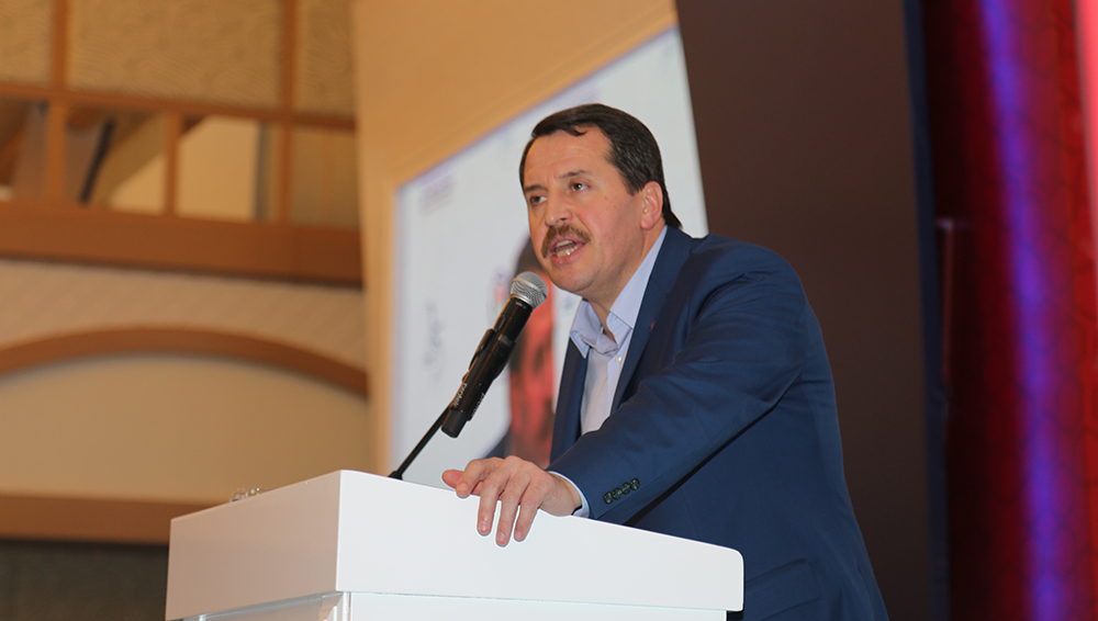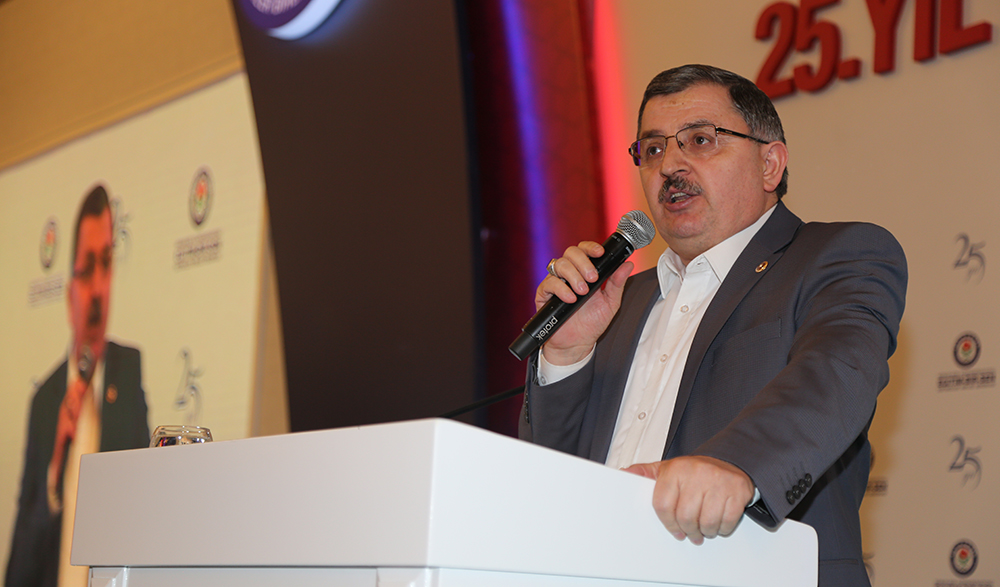 “Kuruluş yılları adeta ateşle imtihan edildiğimiz zamanlardı. Yönlendiren Necmettin Erbakan ve yüreklendiren Hak-İş’e kuruluştaki desteklerinden dolayı teşekkür ediyorum. Darbelere direndik. Bariyer ve barikatları aştık. Biz, daima milletimizin ve millî iradenin tarafında saf tuttuk. 28 Şubat’ta sayımız az ama sesimiz oldukça yüksekti. Milletin değerleri üzerinde palet yürütenlere direndik. 27 Nisan’da en diri cevabı biz verdik. 17-25 Aralık’ta kökü dışarıda olan hainler gerekli dersi bizden aldı. 15 Temmuz’da birileri evlerine gizlenirken, biz alanlardaydık. Milletimize kendimizi borçlu hisset ve bu borcumuz ödemek için elimizden geleni yaptık, yapmaya da devam ediyoruz.”