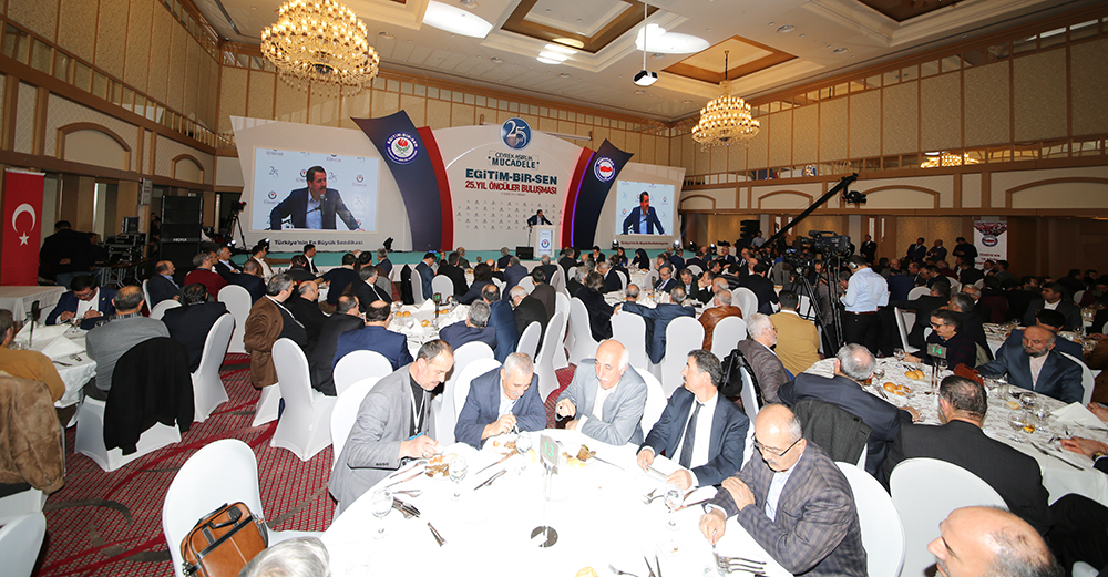Hak-İş Genel Başkanı Mahmut Arslan ise, Eğitim-Bir-Sen’in önemli ve takdirle karşılanan başarılara imza attığını ifade ederek, “Eğitim-Bir-Sen’in başarısı Hak-İş’in başarısıdır. Son yıllarda devrim niteliğinde birçok iş yapıldı ancak eğitim konusunda beklentileri karşılayacak bir adım atıldığını söylemek zor. Eğitim-Bir-Sen’in müfredat konusundaki çabalarını destekliyorum ve bunu en hayırlı işlerden biri olarak görüyorum” diye konuştu.