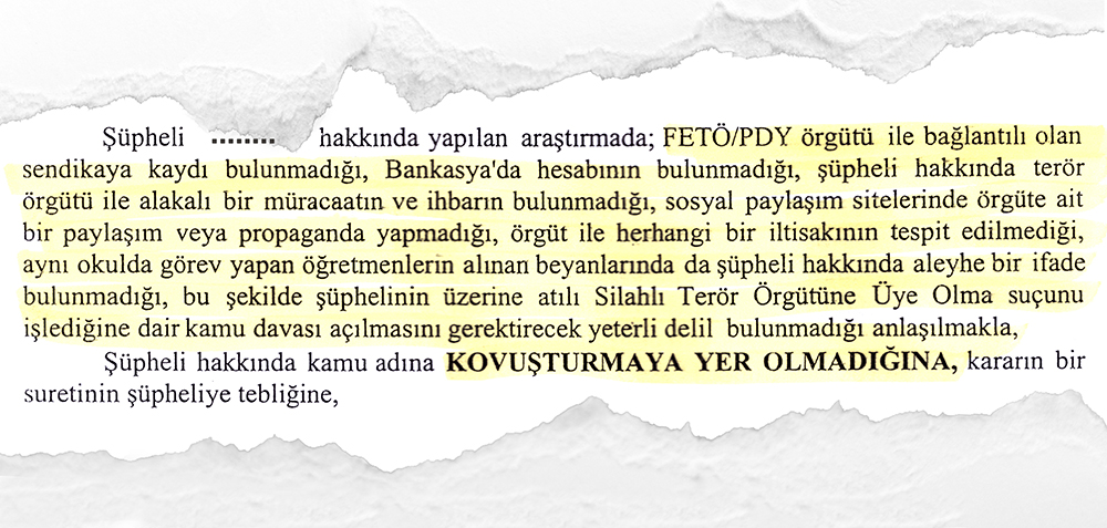 Yukarıdaki örneklerde de görüldüğü üzere, masumiyetini adli merciler önünde ispatlamış, hiçbir terör örgütüyle bağlantısının bulunmadığını ortaya koymuş olan eğitim çalışanları, söz konusu adli evrakları Bakanlığa veya mülki idare amirliklerine sunarak göreve iade talebinde bulunmalarına rağmen hiçbir gerekçe gösterilmeksizin işlem yapılmamaktadır. Bu örnekler istisnai kararlar olmayıp bunlar gibi yüzlercesi bakanlık ve valiliklerde gereğinin yapılmasını beklemektedir.