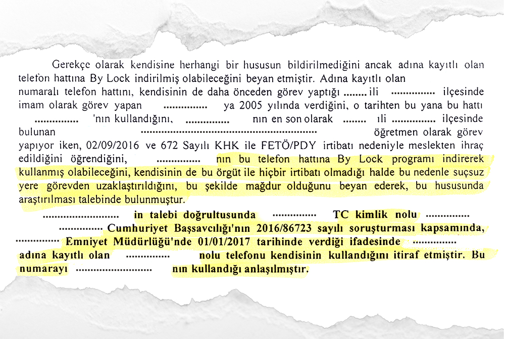 Bylock kullandığı gerekçesiyle ihraç edilenler teknik olarak söz konusu programı kullanmadıklarını ispat ettikleri halde haklarında düzeltici bir işlem yapılmamış olması büyük bir hak ihlalidir. Anılan programdaki istismara açık durumlar göz önüne alınarak detaylı bir araştırma ve inceleme yapılmadan tasarrufta bulunması mağduriyeti sebebidir. Bir kısım eğitim çalışanı ise Bank Asya’da hesabı olduğu gerekçesiyle ya açığa alınmış ya da ihraç edilmiş durumdadır. Ancak sonradan görüldüğü üzere, bu kişilerin bir kısmı örgüte finansal destek sağlayanlar değil, aksine kira ödemesi, para havalesi, altın ya da döviz hesaplarının cari hesaplara çevrilmesi gibi çeşitli vesilelerle banka ile geçici ilişkisi bulunan kişilerdir. Basit bir bankacılık işlemi ile örgütün finansal işlemlerine aracılık edilmesi arasında ciddi bir inceleme yapılmaması mağduriyetlere neden olmuştur.