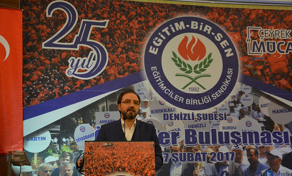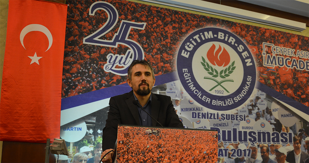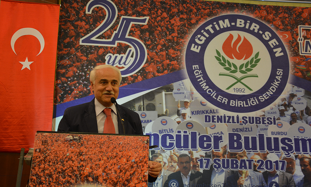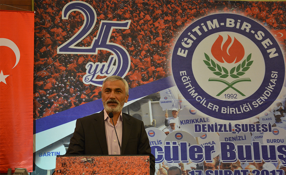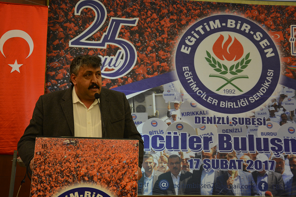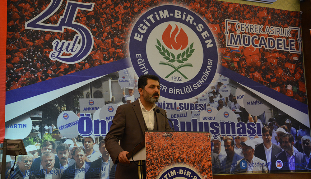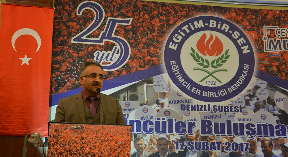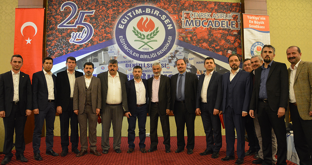 Eğitim-Bir-Sen Genel Başkan Yardımcısı Şükrü Kolukısa, örgütlenmenin önünde engellerin bulunduğu, Türkiye’nin binbir sıkıntı ve zahmetle imtihan olduğu bir dönemde birkaç güzel insan tarafından kurulan, verilen mücadele, harcanan emek sonucu neşvünema bularak bugünlere gelen Eğitim-Bir-Sen’in çeyrek asırlık bir tarihe eriştiğini belirterek, “Birçok hakkın ve kazanımın elde edildiği, yasaklarla mücadelenin yoğun olarak yaşandığı ve bunun sonucunda özgürlük alanlarının genişletildiği 25 yıllık tarihte emek veren, gece gündüz, kar kış, yağmur çamur demeden, zamanını sendikal mücadele için harcayan mensuplarımızı unutmayız, unutmamalıyız. Vefa elbiselerini giymiş bir teşkilatın yöneticileri olarak, eski başkan ve temsilcilerimizle bir araya gelerek, birliğin gücü, beraberliğin bereketi için dünü bugüne tercüme ediyoruz. Bizim ortak değerimiz insan onuru, ortak hedefimiz güçlü ve büyük Türkiye’dir” dedi.
