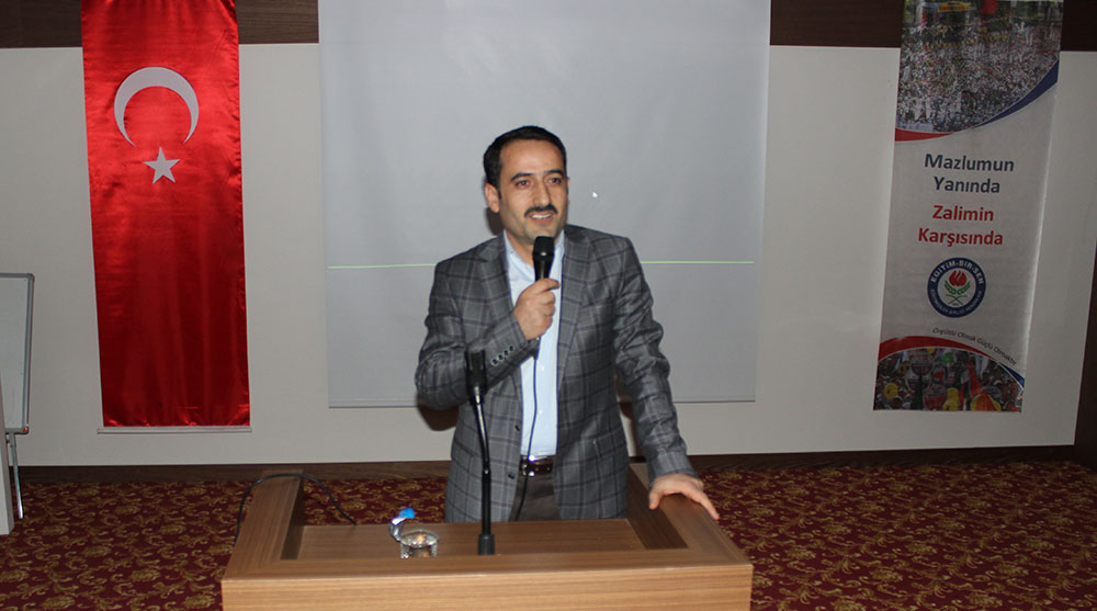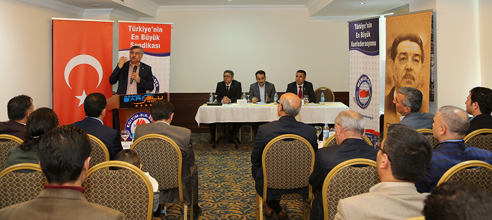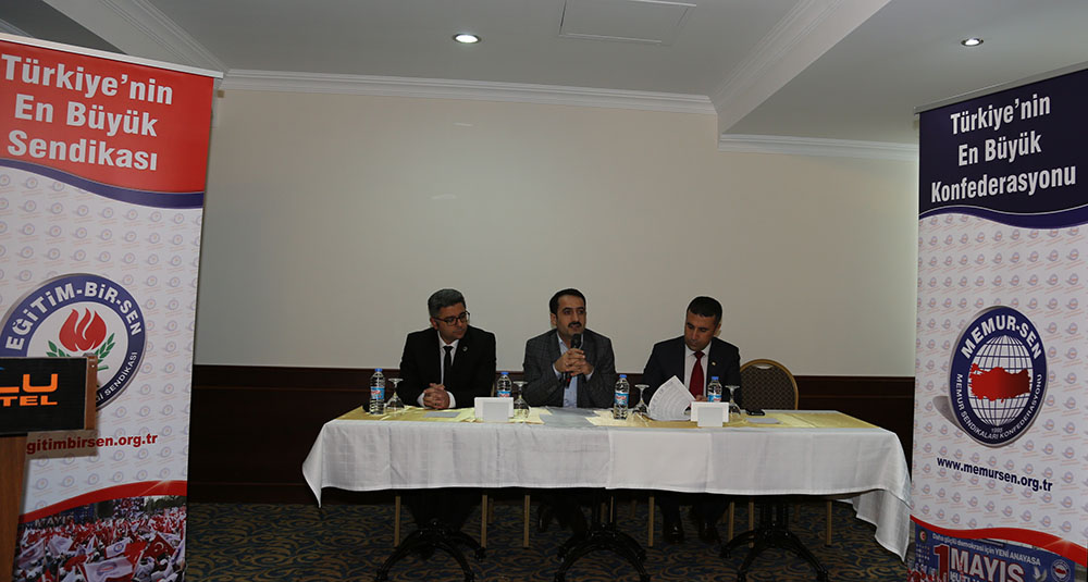 Eğitim-Bir-Sen Genel Başkan Yardımcısı Ramazan Çakıcı, sendika olarak sorumluluklarının farkında olarak yeni üyelerle yollarına devam edeceklerini ifade ederek, sözlerini şöyle sürdürdü: “Yolumuz uzun, yükümüz ve sorumluluğumuz ağırdır. Çeyrek asırlık hak ve özgürlük mücadelesini zirveden yeni ufuklara taşımak, yeni kazanımlar elde etmek, sorunların çözümüne önerilerle katkıda bulunmak, çözüme giden yolları göstermek, medeniyet havzamızda bulunan kardeş ülkelerin eğitim sendikalarıyla birlikte ortak projeler hazırlayarak hayata geçirmek gibi, daha yapmamız gereken çok iş var. El ele verirsek, omuz omuza yürürsek, çözemeyeceğimiz sorun, aşamayacağız engel olmaz.”