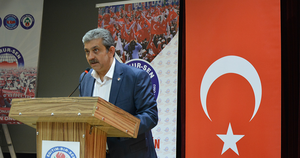 Eğitim-Bir-Sen Genel Başkan Yardımcısı Atilla Olçum, halka rağmen halk için anlayışının geride kaldığını ifade ederek, “Ötekileştirmeler, milletin iradesini devletleştirmeler, bürokratik vesayet, askeri vesayet, her on yılda bir millete, demokrasiye ve sivil siyasete balans ayarı çeken darbeler tarihi oluşturuldu. 1960 darbesi ve ürünü olan 61 Anayasası’yla millet ve egemenlik arasındaki mesafe daha da açıldı. 80 darbesiyle, kutsal ve egemen devlet profili daha da güçlendirilip vesayet kurumsallaştırıldı. Bu anlayışı en son 15 Temmuz’da gördük. Millî iradeye, demokrasiye, haklarımıza sahip çıkmak için ‘evet’ demeliyiz” dedi.