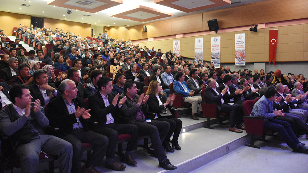 Genel Başkan Yardımcısı Hasan Yalçın Yayla, yaptığı konuşmada, Eğitim-Bir-Sen’in çalışmalarına, eğitim çalışanları adına elde ettikleri kazanımlara, anayasa değişikliği referandumuna ve Ağustos ayında yapılacak toplu sözleşme görüşmelerine değinerek, “Nitelikli işler yapan bir teşkilatız. Ortaya koyduğumuz tarz, ürettiğimiz projeler bize yakışır olmalıdır. Bu konuda toplumun güvenini kazandık. Kriz ortamlarında en çok kaybeden kesim olan kamu görevlileri olarak, istikrarın olduğu bir zeminde bizler kazanmaya devam ederiz. Onun için hem emek hem de ‘evet’ için ter akıtıyoruz. Bizim için, 16 Nisan’da yapılacak olan anayasa değişikliği referandumu, mutabakatların imzalanacağı 15 Mayıs ve Ağustos ayında yapılacak olan 4. Dönem Toplu Sözleşme görüşmeleri çok önemlidir. Siyasi istikrar ve ülkemizin, milletimizin istikbali için 16 Nisan’daki referandumda ‘evet’ oyu kullanacağız. Bunun için 81 ilde ve birçok ilçede toplantılar gerçekleştiriyoruz” dedi.