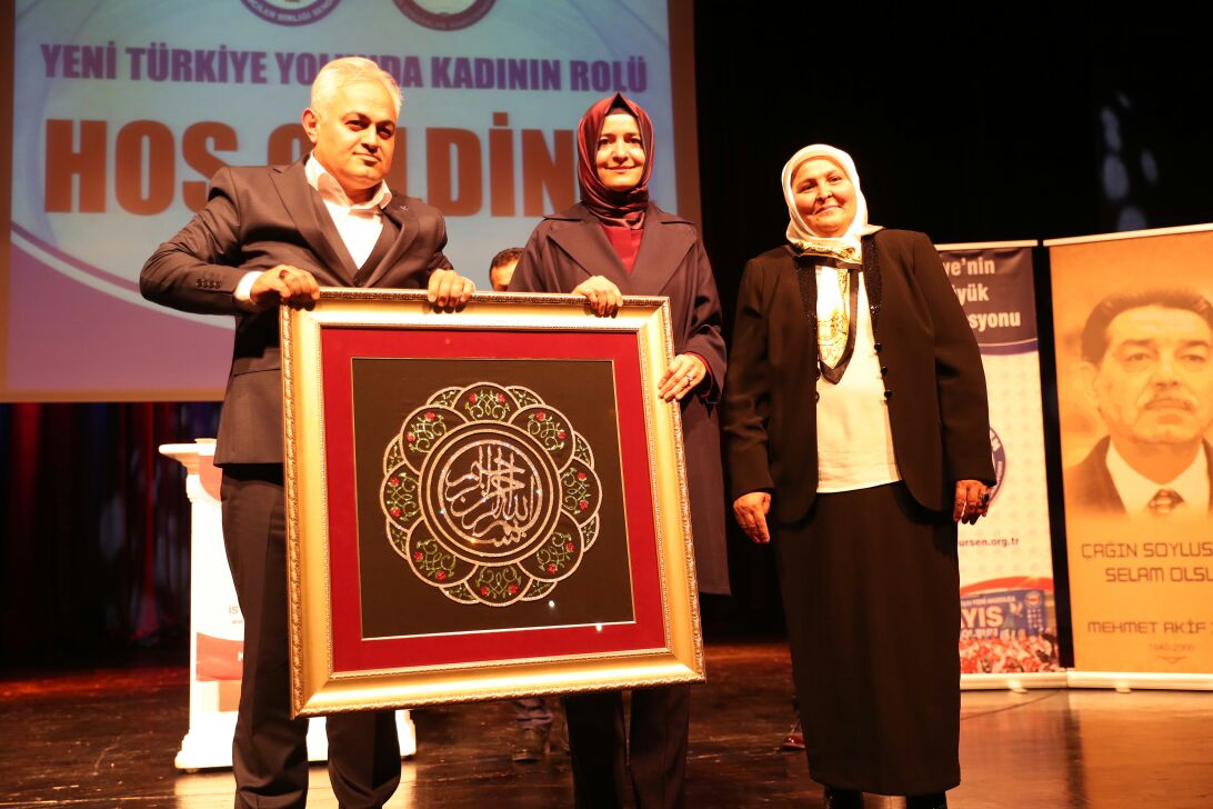 İstanbul 5 No’lu Şube Başkanı Celal Demirci ise, yaptığı selamlama konuşmasında, “Bu topraklarda kadın yetenekleri ve gücüyle her zaman toplumsal hayatın içinde olmuştur. Bacıyan-ı Rum, Anadolu Bacıları Osmanlı Devleti’nin içinde nasıl yer aldıysa, Nene Hatunlar Kurtuluş Savaşı’nın nasıl en büyük gücü olduysa, 15 Temmuz işgal girişiminde alanlarda tankların, kurşunların önünde korkusuzca duran Şerife Bacılarımız gibi onurlu kadınlarımız da yeni Türkiye yolunun temelini atmışlardır” dedi.