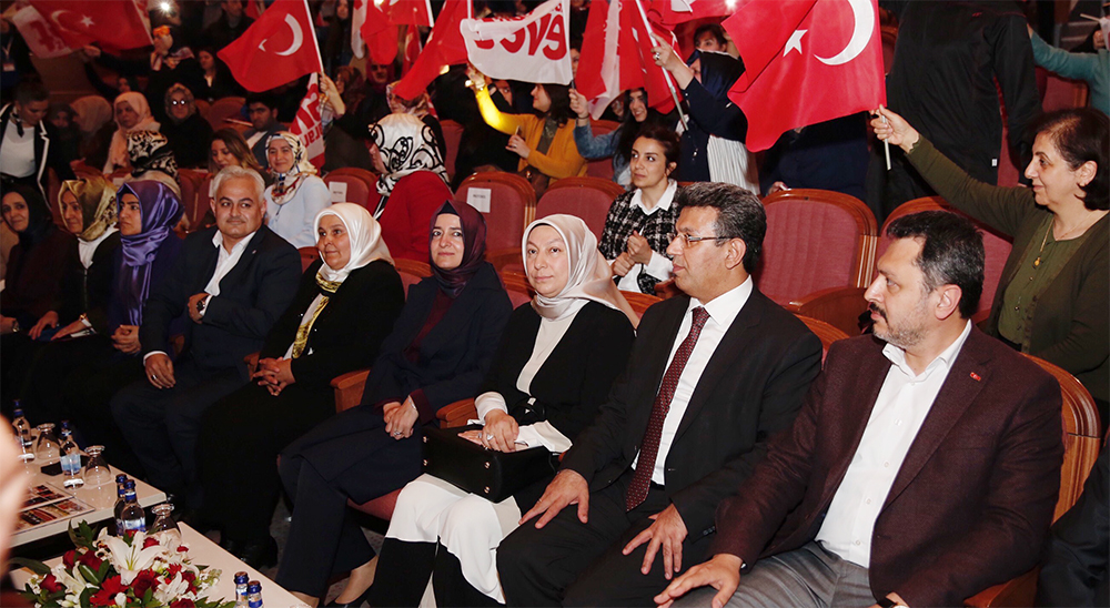 Aile ve Sosyal Politikalar Bakanı Fatma Betül Sayan Kaya, 15 yıldır hızla büyüyen Türkiye’yi durdurmak isteyenlerin bugün yine ortaya çıktıklarını belirterek, “Biliyorlar ki Türkiye güçlenirse, kendi güçsüzlükleri iyice ortaya çıkacak. Ezdikleri mazlum halklar, Türkiye’den aldıkları ilhamla bir dirilişin içine girecekler. Bunu daha önce de yaptılar, hem de defalarca. Hak ve adaleti tesis etme mücadelemizden korkan hainler, Türkiye’yi kaosa sürükleyerek durdurmak istediler. Biz yükselmenin kadınla başladığını bilen bir milletiz” diye konuştu.
