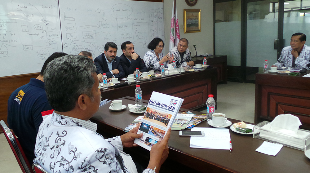 Eğitim-Bir-Sen Uluslararası İlişkiler Koordinatörü Gazi Doğan’ın da yer aldığı ziyaret ve görüşmelerde, ilk olarak, 3 milyonu aşkın eğitim çalışanı üyesiyle ülkenin en büyük eğitim sendikası olan Persatuan Guru Republik Indonesia/Endonezya Öğretmenler Birliği (PGRI) Genel Başkan Dr. Unifah Rosyidi, Genel Sekreter M. Qudrat Nugraha, Genel Sekreter yardımcıları Dian Mahsunah, Dr. Supardi, Başkan yardımcıları Didi Suprijadi, Drs. Muh. Asmin ve Dr. H. Muhir Subagja ile bir araya gelerek sendikal faaliyetlere ilişkin bilgi alışverişinde bulunan Eğitim-Bir-Sen Genel Başkan Yardımcısı Ramazan Çakırcı ve Şükrü Kolukısa, daha sonra, Endonezya’da seçilen iki ulusal yasama meclisinden biri olan Dewan Perwakilan Rakyat/Halk Temsilcileri Konseyi (DPR) Başkan Yardımcısı Fahri Hamzah’ı ziyaret etti.