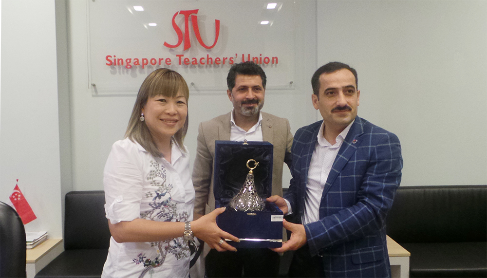 Sıngapore Teachers’ Unıon/Singapur Öğretmenler Birliği (STU) Genel Başkan Yardımcısı Carine Yip, Yönetim Kurulu üyeleri Wong Hui Xin, Pong Chin Nam ve Fong Yoong Kheong ile çalışmalar hakkında görüşen Çakırcı ve Kolukısa, daha sonra Sıngapore Malay Teachers’ Unıon/Singapur Malay Öğretmenler Birliği’ne geçti.