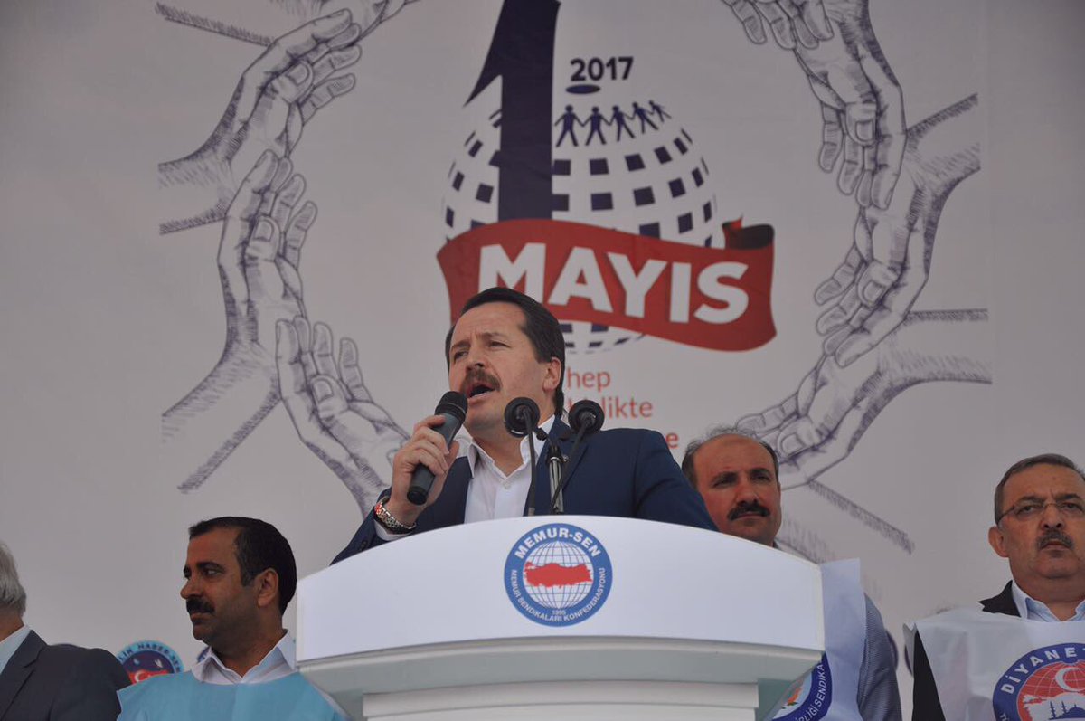 15 Temmuz direnişinde 4 şehit veren Memur-Sen üyelerini de anan Yalçın, “15 Temmuz’da FETÖ’nün mankurtlarına, Pensilvanya’nın haydutlarına had bildiren, 27 gün, 27 gece milli irade nöbeti tutan kardeşlerim, Bu 1 Mayıs, 15 Temmuz’dan sonraki ilk 1 Mayıs. Kahramanmaraş’taki 1 Mayıs’ta aramızda olan 4 üyemizi 15 Temmuz’da şehit verdik. Biz biliyor ve inanıyoruz ki, şehitler ölmez, şehitler için öldü denilmez. O halde soruyorum sizlere; Enerji-Bir-Sen Üyemiz ve Şehidimiz Cuma Dağ burada mı? Diyanet-Sen Üyemiz ve Şehidimiz Ali Alıtkan burada mı? Eğitim-Bir-Sen Üyemiz ve Şehidimiz Yusuf Elitaş burada mı? Eğitim-Bir-Sen Üyemiz ve Şehidimiz İlhan Varank Hocamız burada mı? Evet, onlar aramızdalar. Evet, onlar soylu mücadelemizde daima yanımızdalar. Onlar bu şahitlikleriyle soylu mücadelemizin yıldızları olarak yaşayacaklar. Bize yol göstermeye, ışık vermeye, rehberlik etmeye devam edecekler" dedi.