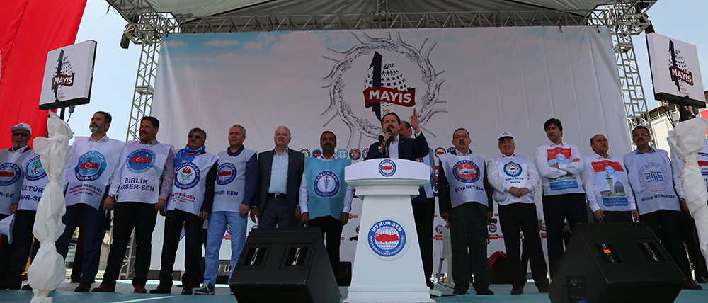 1 Mayıs bildirisinin okunmasının ardından kürsüye Eğitim-Bir-Sen ve Memur-Sen Genel Başkan Ali Yalçın çıktı. Zafer meydanında on binlere seslenen Yalçın, 4. Dönem Toplu Sözleşme için kurulacak masaya getirecekleri teklifleri deklare etti, konfederasyonun kırmızı çizgilerini açıkladı, terör örgütleri, vesayet bekçileri ve küresel şer odaklarına meydan okudu.