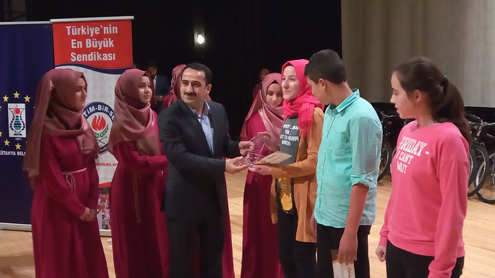 Kütahya Valisi Ahmet Hamdi Nayir, Belediye Başkanı Kamil Saraçoğlu, İl Milli Eğitim Müdürü Sabahattin Dülger, Eskişehir İl Milli Eğitim Müdürü Necmi Özen, Türkiye İnsan Hakları ve Eşitlik Kurumu Üyesi Hıdır Yıldırım, Simav Belediye Başkanı Süleyman Özkan, eğitim çalışanları, dereceye giren öğrenciler ve velilerinin katıldığı programda konuşan Eğitim-Bir-Sen Genel Başkan Yardımcısı Ramazan Çakırcı, il genelinde 9 bin öğrencinin katıldığı yarışmada emeği geçen herkese teşekkür etti.