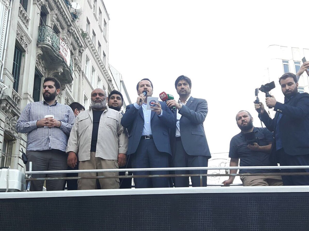 İHH Başkanı Bülent Yıldırım, Ramazan ayında yürüyüşe katıldıklarından dolayı Filistin sevdalılarına teşekkür etti. Kudüs’teki ezan yasağına değinen Yıldırım, “Ezanı susturmaya karar vermişler. Ezanı susturuyorlar hem de Mescid’i Aksa’da. Allah sizin dilinizi, elinizi kurutsun! Bütün dünya bizi yalnız da bıraksa bizler, Doğu Türkistan’a, Moro’ya, Keşmir’e, Suriye’ye, Irak’a ve Libya’ya sahip çıkmaya söz veriyoruz” dedi.