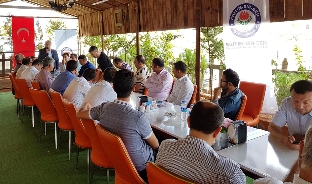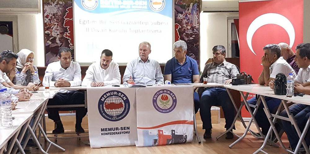 Mithat Sevin, Kilis, Gaziantep, Osmaniye ve Kahramanmaraş’ta gerçekleştirilen il divan toplantılarında üyelerle bir araya geldi. Eğitimin gündemine ilişkin değerlendirmelerin yapıldığı toplantılarda konuşan Sevin, kuruldukları 1992 yılında bu yana daha iyi bir eğitim, sorunlarından arınmış eğitim çalışanları için ter akıttıklarını ifade ederek, “Korkuların, kaygıların, kuşkuların atmosferi kuşattığı, bariyerlerin, barikatların önümüze birer birer serildiği dar ve zor zamanlarda dahi duruşumuzdan asla taviz vermedik. Hep millî iradeden yana olduk, mazlumun ve mağdurun sesi; en temel hakların yasaklanmasına, özgürlüklerin turnikelere sıkıştırılmasına karşı verdiğimiz mücadeleyle, emekten, emekçilerden yana duruşumuzla, sorun çözmeye katkıda bulunuşumuzla kazanımların adresi, Türkiye’nin en etkili sivil toplum kuruluşu olduk. Bununla yetinmedik, yetinmiyoruz. Yapmamız gereken pek çok iş olduğunun idrakindeyiz. Bulunduğumuz yer, daha çok çalışmamızı gerektirmektedir. Mevcut kazanımlarımıza yenilerini eklemek, ortaya çıkan/çıkarılan yeni sorunların çözümüne katkıda bulunmak, eğitimin sorunlu alanlarıyla ilgili çalışmalar yapmak öncelikli hedeflerimiz arasındadır” şeklinde konuştu.
