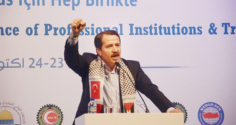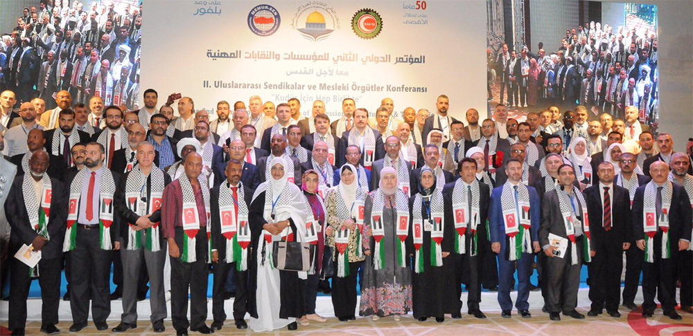 ‘Kudüs için hep birlikte’ temasıyla bu yıl ikincisi düzenlenen ‘Uluslararası Sendikalar ve Mesleki Örgütler Konferansı’, ikinci gününde Çalışma ve Sosyal Güvenlik Bakan Yardımcısı Orhan Yeğin, TBMM Meclis İdare Amiri Salim Uslu, Türkiye-Filistin Parlamentolar Arası Dostluk Başkanı Hasan Turan, Eğitim-Bir-Sen ve Memur-Sen Genel Başkanı Ali Yalçın ve Hak-İş Genel Başkanı Mahmut Arslan’ın protokol konuşmalarıyla devam etti. 50 ülkeden 250 davetlinin katıldığı konferans, yayımlanan İstanbul Bildirgesi’yle tamamlandı.