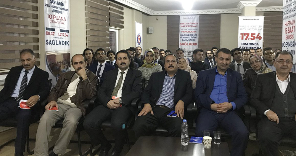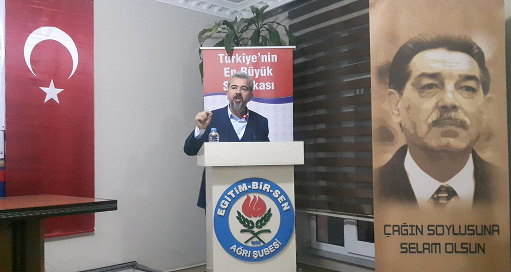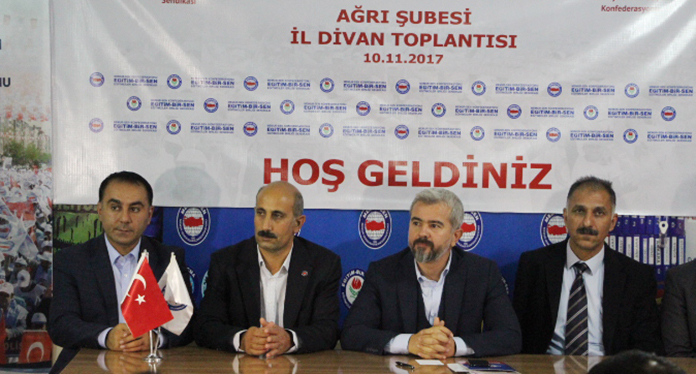 Ağrı Şubesi’nin il divan toplantısında konuşan Atilla Olçum, öğretmen sirkülasyonunun fazla olduğu illerde, istihdamda güçlük çekilen yerlerde oluşan öğretmen açığının giderilmesi için bulunan çözümün, 668 sayılı Kanun Hükmünde Kararname’nin 4. maddesinin altıncı fıkrasıyla tekrar uygulamaya konulan sözleşmeli öğretmenliğin yeni sıkıntılara neden olduğunu ifade ederek, “Sözleşmeli öğretmenlik uygulaması başlı başına bir problem iken, atanan/atanacak öğretmen seçiminin mülakatla yapılması, söz konusu mülakatlar çerçevesinde adayların kazanma ya da kaybetme nedeninin objektif bir şekilde izah edilememesi, eğitim hayatı boyunca çeşitli sınavlara tabi tutulan öğretmen adaylarının farklı komisyonlarca bir kaç dakikalık mülakatla elenmesi adalet duygusunu zedelemekte, yeni küskünler ordusunun meydana gelmesine zemin hazırlamaktadır. Yetkililere çağrımız, yeni personel alımında daha adil, hakkaniyetli ve liyakati esas alan bir istihdam modelini hayata geçirmeleridir. Öğretmen istihdamında güçlük çekilen bölgelerdeki sorunun çözümü, sözleşmeli ve ücretli öğretmenlik, yer değiştirme yasağı gibi geçici tedbirlerle değil, öğretmenlerin kalıcı olarak görev yapmalarını teşvik edecek katkılarla mümkündür. Eğitim çalışanlarına, zorunlu hizmet bölgelerinde görev yapmaları halinde illerin mahrumiyet durumlarına göre ilave özel hizmet tazminatı ödenmelidir” şeklinde konuştu.