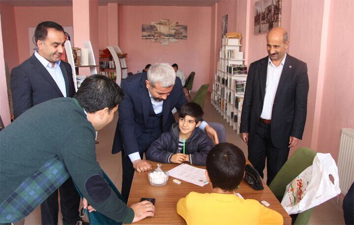 Daha sonra, Ağrı Dağı Anadolu Lisesi yönetici ve öğretmenleriyle bir araya gelen Olçum, “Kökü Mazide Gözü Atide Bir Gençlik” projesi kapsamında Genç Memur-Sen tarafından Eleşkirt’te açılan kitap kafeyi Şube Başkanı Süleyman Gümüşer ve Kaymakam Gülhani Ozan Sarı ile birlikte ziyaret etti.