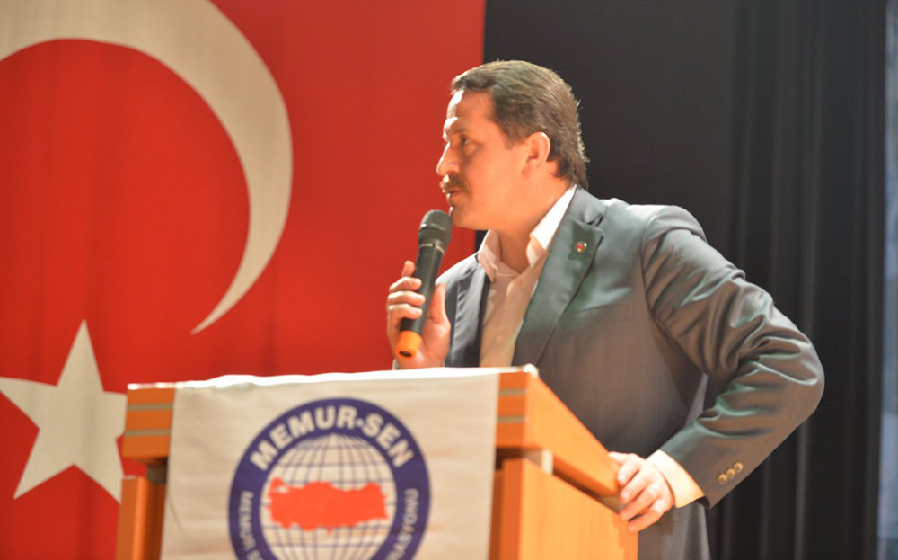 Israrla ve sabırla vardıkları her menzille birlikte, yorgunluklarının huzurlu bir kıvanca dönüştüğünü kaydeden Yalçın, “Sayısal değer bakımından ülkemizin en büyük sendikasıyız ama esasen inancımızla güçlü ve haklıyız. İnanç etrafında saf saf bütünleşerek verdiğimiz mücadele, başta darbeler olmak üzere, emperyalizmin ve onların yerli işbirlikçilerinin ufkumuza örmeye çalıştıkları karanlık duvarları yerle bir etmiştir. Samimiyetimizin kararlılığıyla hiç durmadık, durmayacağız” şeklinde konuştu.