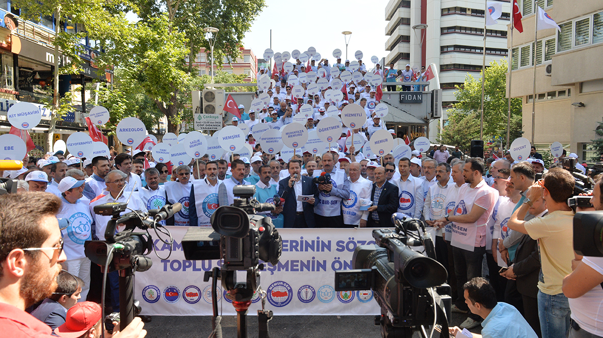 Diğer taraftan, Sayın Cumhurbaşkanımızın aynı açıklamada yer verdiği kamudaki taşeron işçilerin kamu işçisi ve kadrolu işçi statüsüne geçirilmesine yönelik düzenlemeyi de, çağdaş kölelik olarak tanımladığımız taşeron işçiliğin kamuda son bulması ve taşeron işçilerin saygın iş ve insan onuruna uygun ücret noktasında hak ettikleri konuma kavuşması açısından önemli ve değerli bir sonuç olarak görüyoruz. Türkiye’nin, çalışma hayatının, kamu personel sisteminin, istihdam uygulamalarının bütün zeminlerinde saygın iş ve insan onuru ilkeleriyle uyumlu, adalet ve hakkaniyet temelli, kadrolu ve iş güvenceli bir çalışma ve personel mevzuatı üretecek fikri birikime ve ekonomik güce sahip olduğuna dair bakışımızı ve öz güveni de bu gündem üzerinden bir kez daha vurguluyoruz.