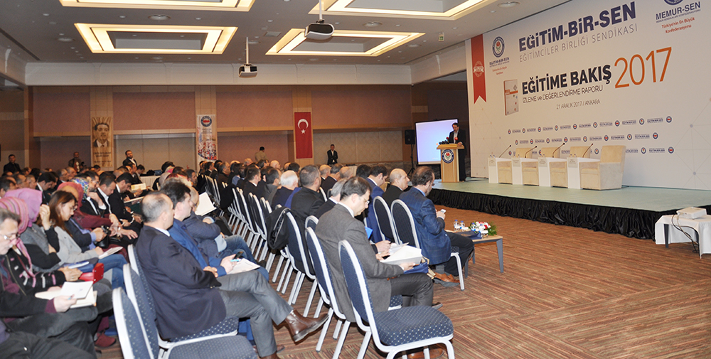 Ali Yalçın, Eğitim-Bir-Sen Stratejik Araştırmalar Merkezi (EBSAM) tarafından hazırlanan “Eğitime Bakış 2017: İzleme ve Değerlendirme Raporu’nu düzenlenen basın toplantısında açıkladı. Günümüzde eğitimin, toplumsal ve ekonomik refaha ulaşmada en önemli araç olarak kabul edildiğini ifade eden Yalçın, “Bununla birlikte, eğitim, bireylerin kendisini gerçekleştirmesi, beceri ve yeteneklerini geliştirmesi için de en önemli unsurlardan biridir. Bireylerin eğitimde kalma süreleri arttıkça beceri ve nitelikleri artmakta, daha iyi iş imkânlarına sahip olmakta, kişisel gelirleri ve refahları artmaktadır. Bundan dolayı, Türkiye dâhil tüm dünyada okullaşma oranları ve süreleri hızla artmakta, öğretmen ve derslik başına düşen öğrenci sayısı azalmakta ve eğitime giderek artan bir oranda daha fazla yatırım yapılmaktadır. Eğitime ayrılan kaynaklar ve nicel göstergelerdeki bu büyümenin eğitim sisteminin kalitesini nasıl etkilediği, sistemin ne kadar etkin ve verimli çalıştığı, hizmetlerin ne kadar eşit bir şekilde dağıtıldığı oldukça önemli hâle gelmektedir. Dolayısıyla, eğitime ayrılan kaynakların ve imkânların ne kadar etkin ve verimli kullanıldığının, vatandaşların bu hizmetlerden ne derece eşit bir şekilde faydalandığının mutlaka izlenmesi ve değerlendirilmesi gerekmektedir. Türkiye’nin en büyük eğitim sendikası ve sivil toplum örgütü olmanın bilinciyle eğitim sistemini izleme ve değerlendirme sorumluluğuna oldukça önem atfediyoruz. Bu çerçevede, 2016 yılında Eğitime Bakış 2016: İzleme ve Değerlendirme Raporu’nu, 2017 yılında ise Yükseköğretime Bakış 2017: İzleme ve Değerlendirme Raporu’nu hazırladık ve kamuoyuyla paylaştık. İki rapor da kamuoyunun, eğitimcilerin, akademisyenlerin ve karar alıcıların dikkatini çekmiş ve yeni tartışmalara vesile olmuştur” şeklinde konuştu.