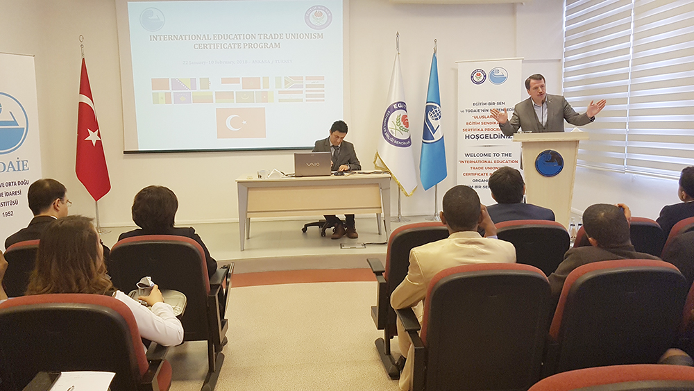Eğitim-Bir-Sen ve Türkiye ve Orta Doğu Amme İdaresi Enstitüsü (TODAİE) tarafından düzenlenen “Uluslararası Eğitim Sendikacılığı Sertifika Programı”nın ikincisi 14 ülkeden 15 sendika temsilcisinin katılımıyla başladı.